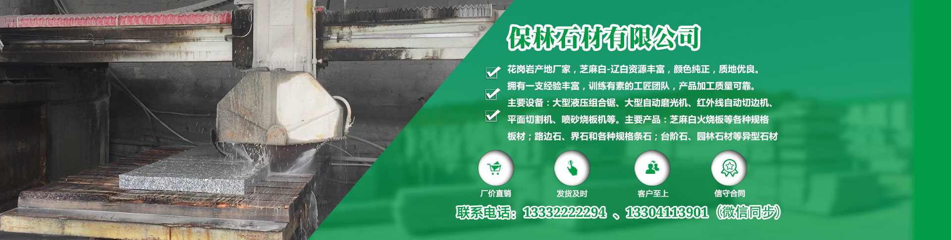 莊河寶林石材廠2014年新增石材自動(dòng)生產(chǎn)線,加工規(guī)格標(biāo)準(zhǔn),質(zhì)量穩(wěn)定可靠。