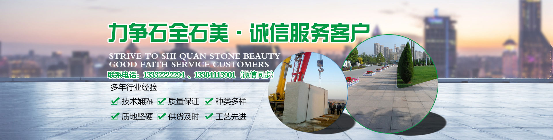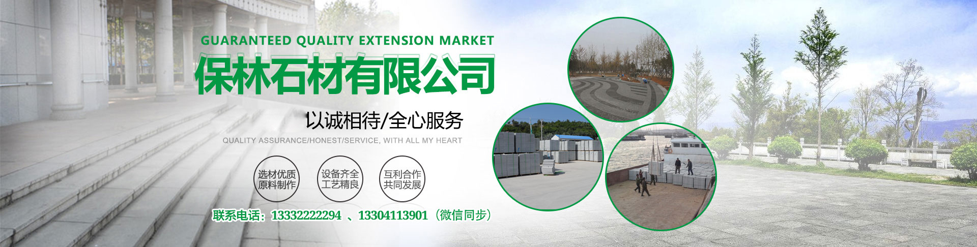 今年寶林石材花崗巖噴砂板、火燒板、機(jī)刨板、樓梯踏步、臺(tái)階板、路邊石、蘑菇石、小塊石等暢銷遼寧大連、丹東、沈陽(yáng)、本溪、撫順、鞍山、吉林長(zhǎng)春、延吉、白山、黑龍江哈爾濱、牡丹江、大慶等各地,得到了廣大用戶較好評(píng)價(jià),為本廠創(chuàng)造了良好信譽(yù)。